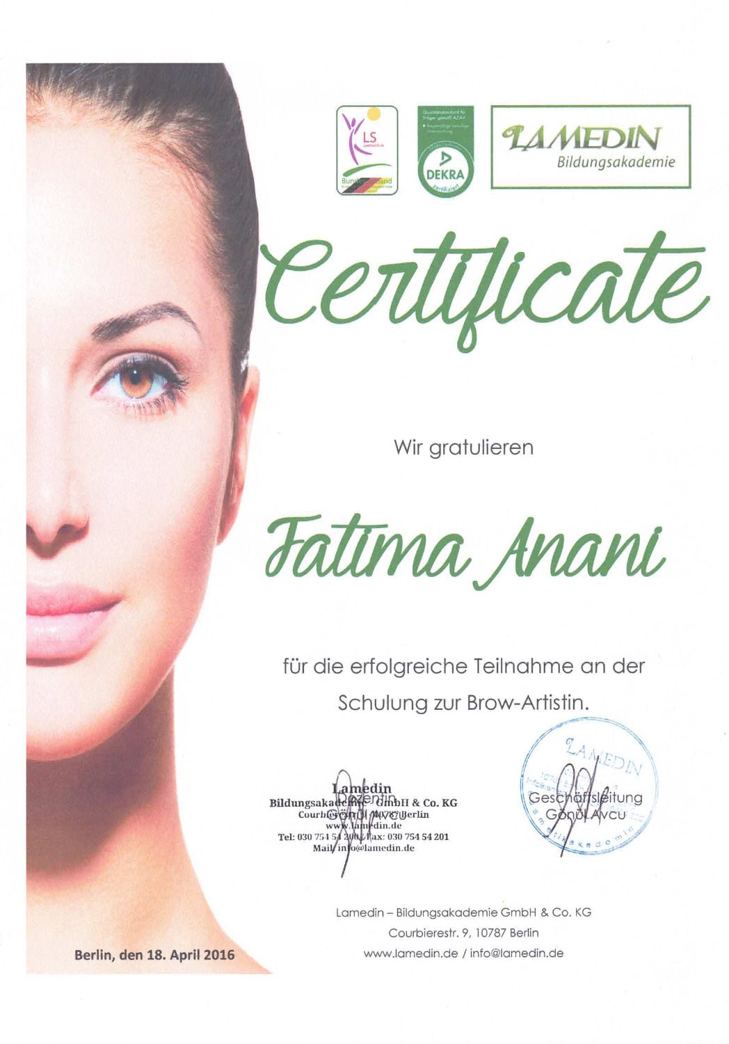 Staatlich geprüfte Kosmetikerin & IHK zertifizierte Ausbilderin Fatima Anani